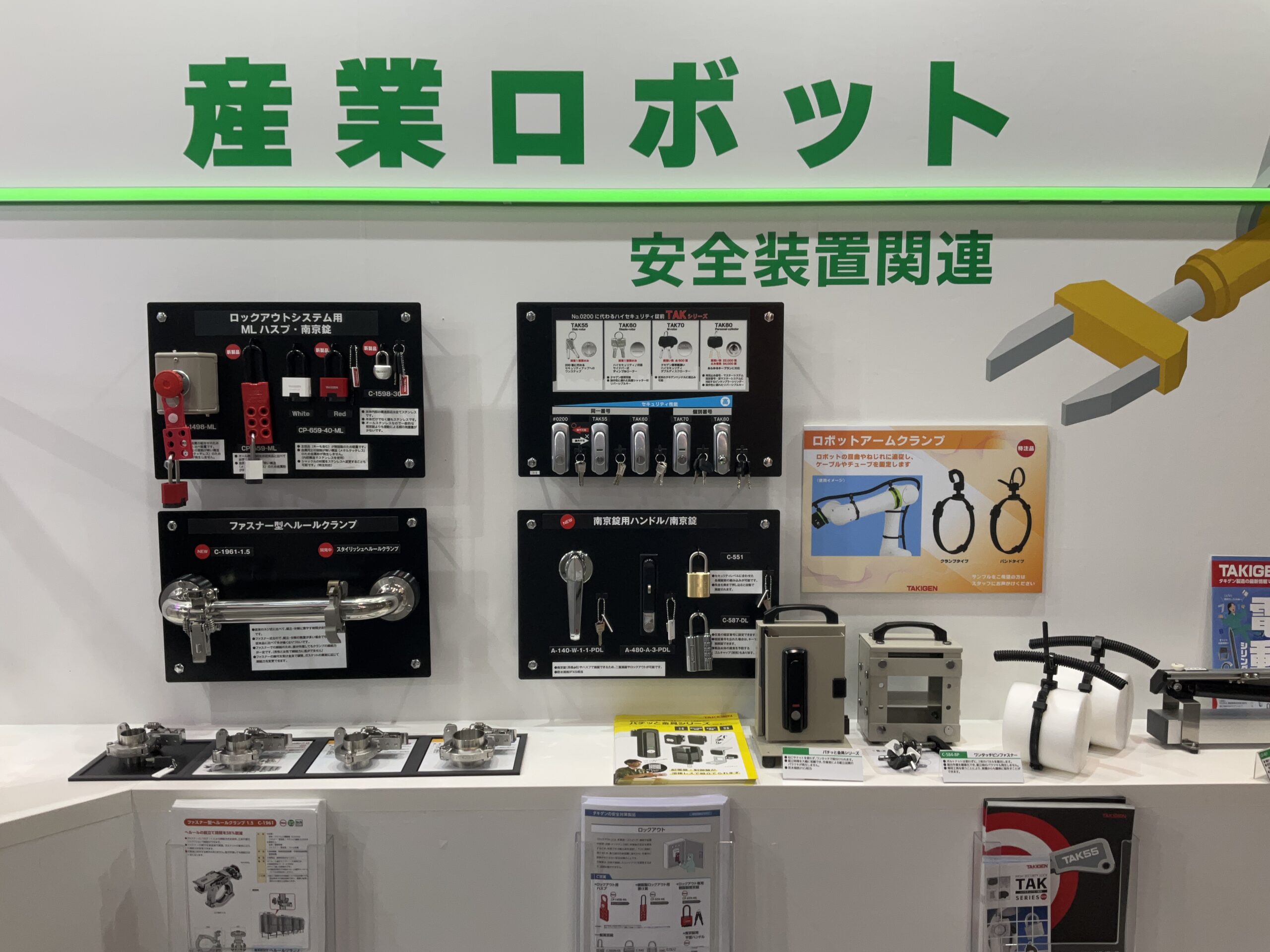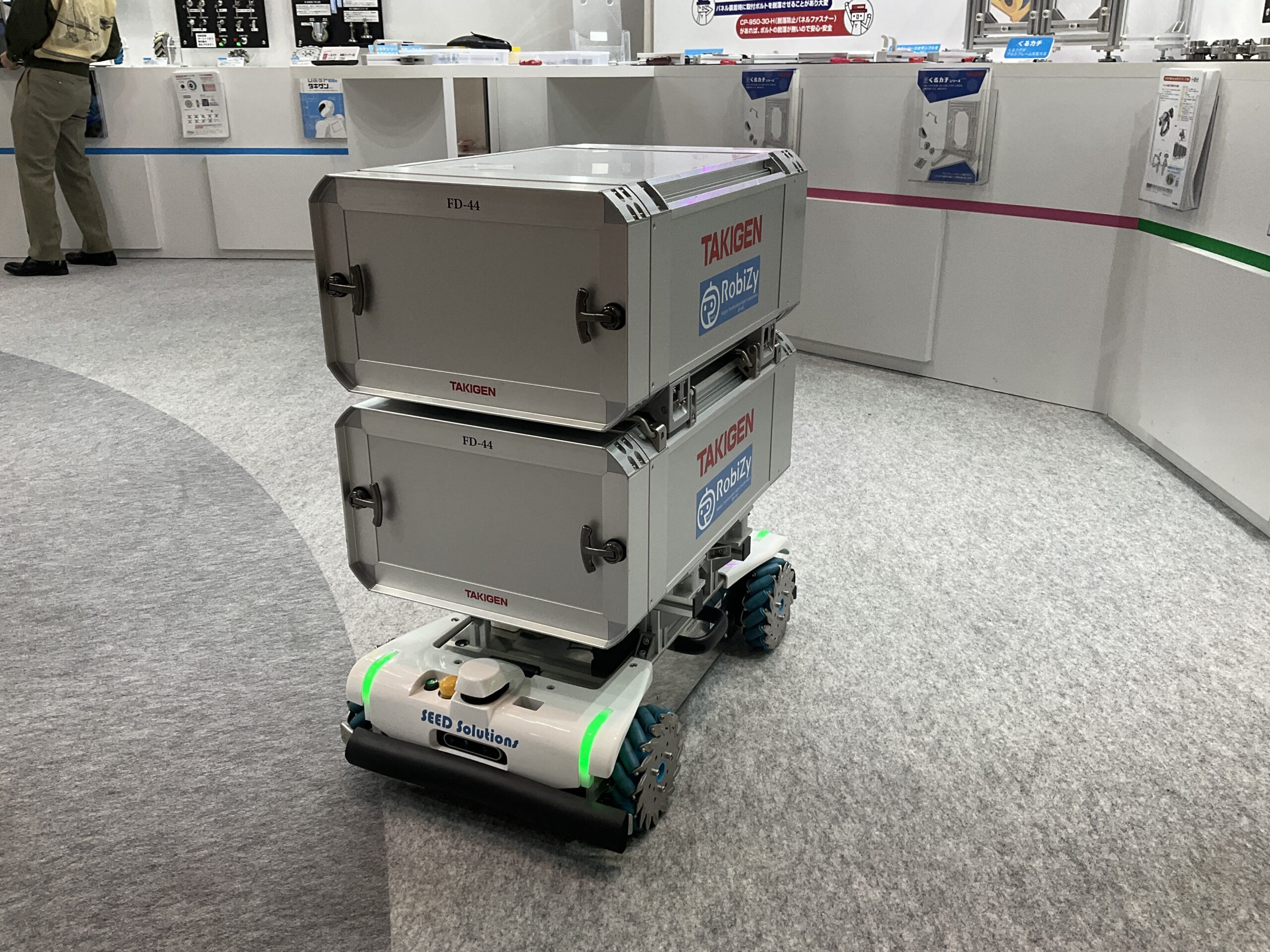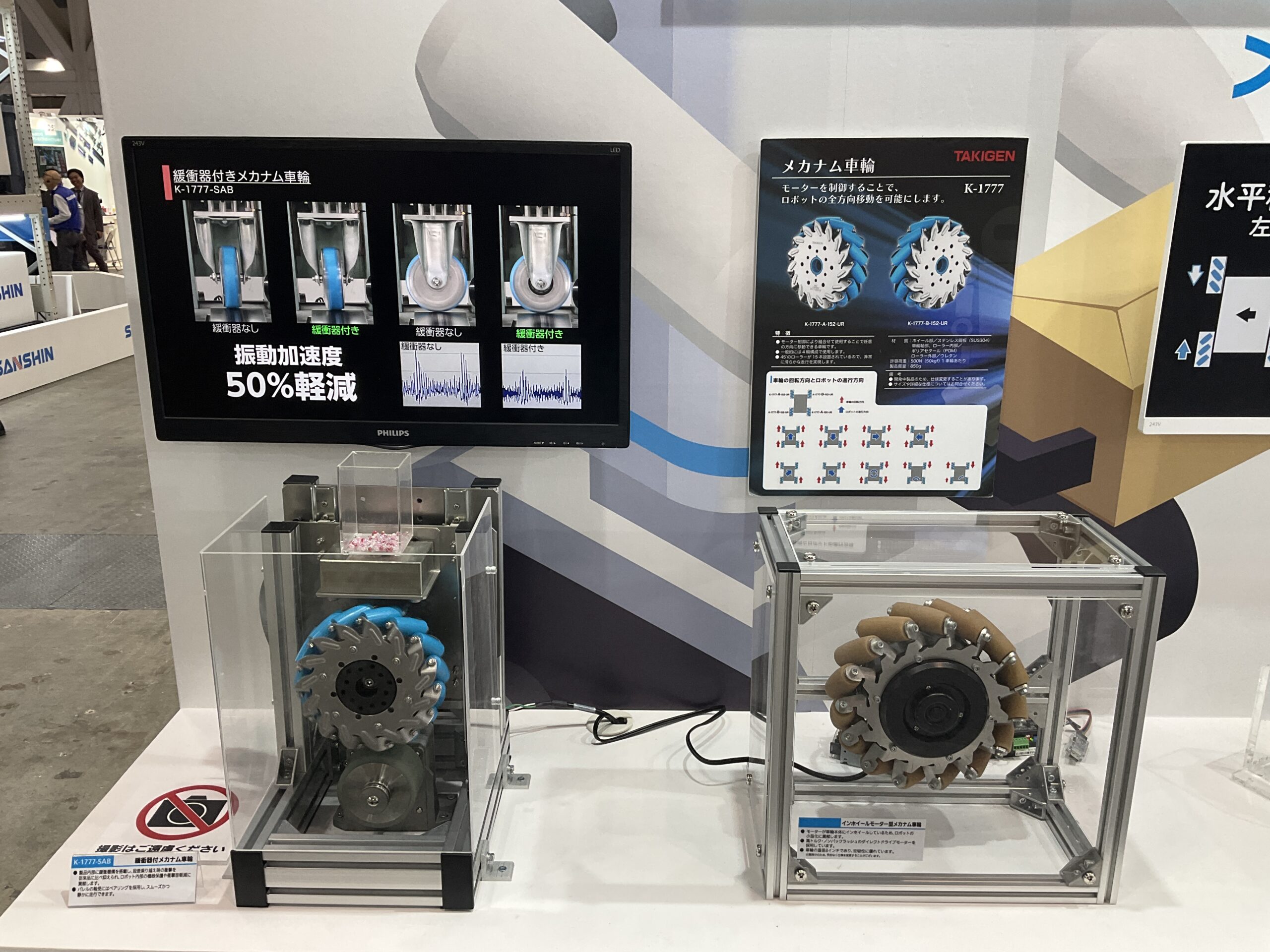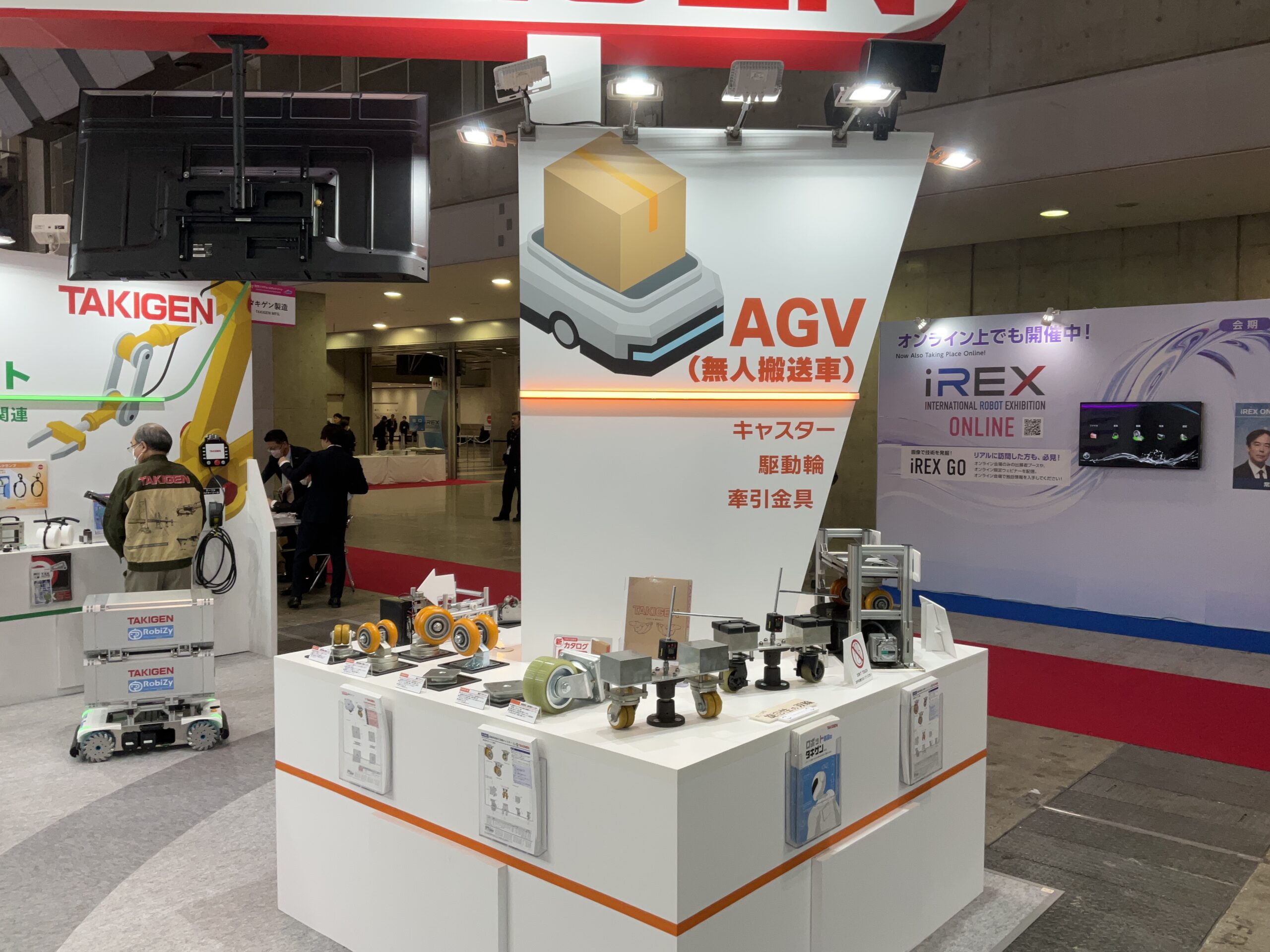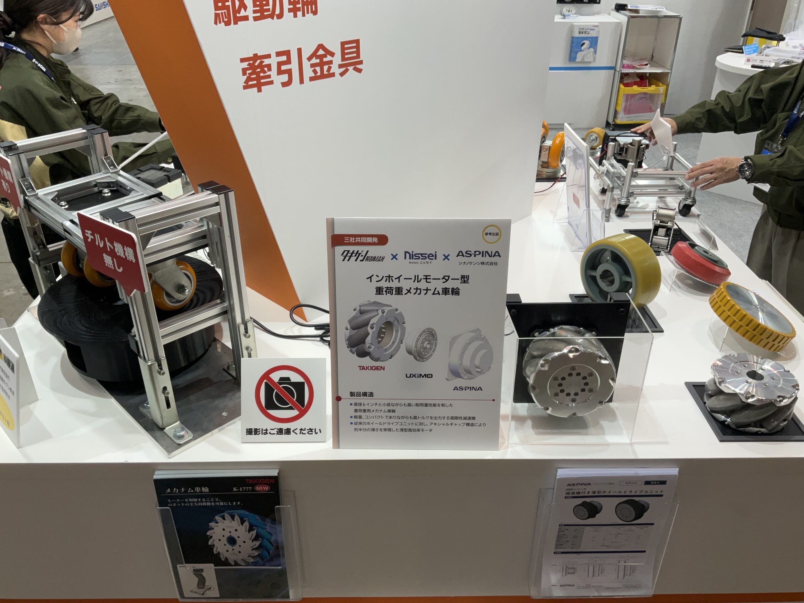 搬送用ロボット向けに車輪がチルトする【重量用高耐久双輪キャスター】、アルミフレームの設計・組立を省力化する【くるカチシリーズ】、サービスロボット向けに全方位移動可能な駆動輪【メカナム車輪】など、現場ニーズに応える製品を出展中です。皆さまお誘い合わせの上、ぜひタキゲンブースにご来場ください。