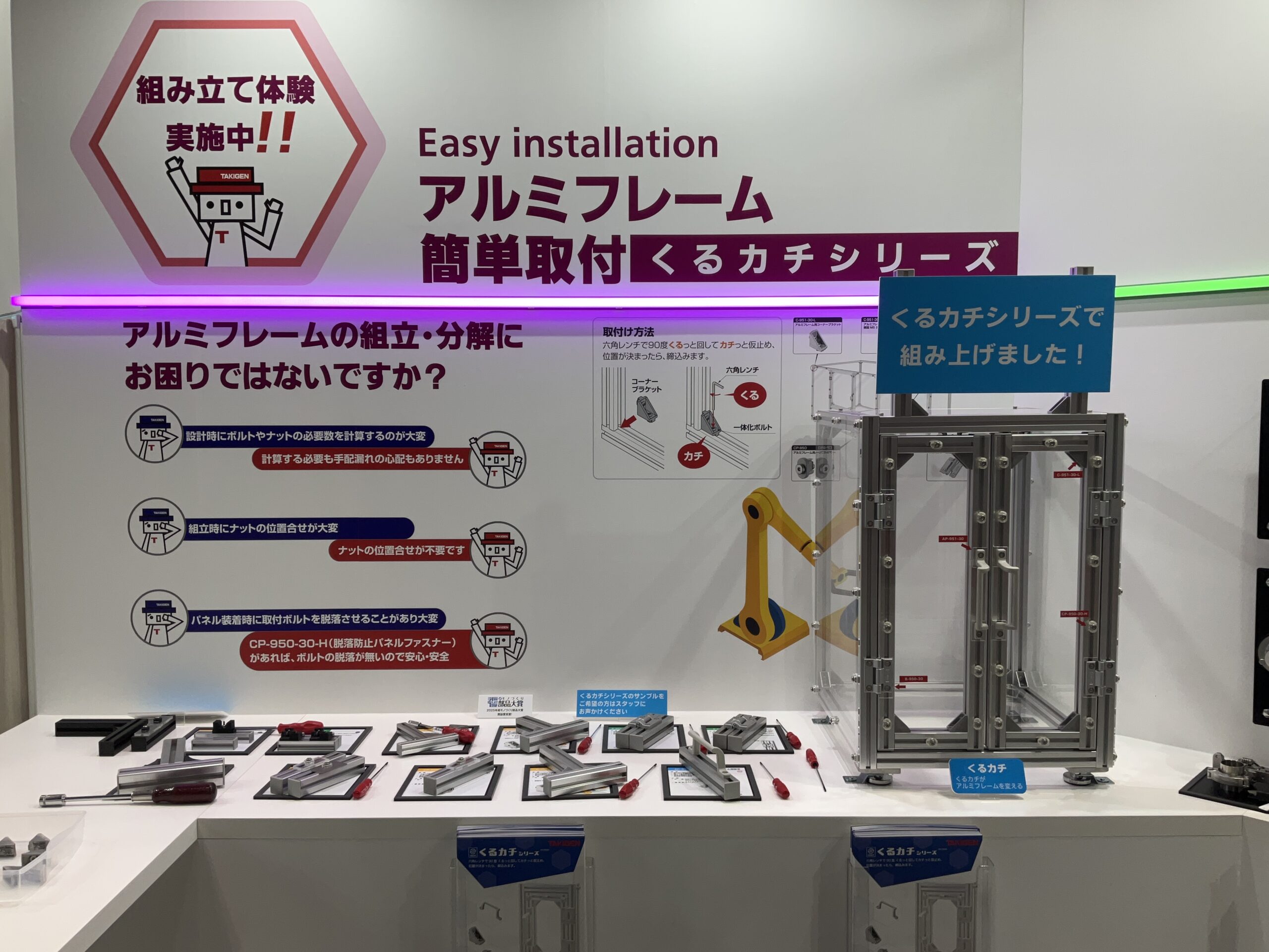 アルミフレームの組立て時間を大幅に短縮します