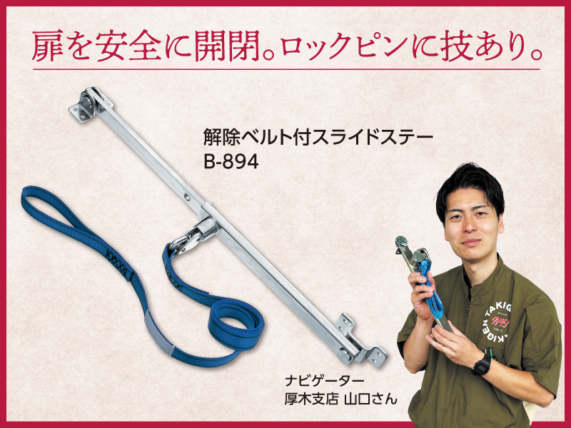 扉を安全に開閉「解除ベルト付スライドステーB-894」