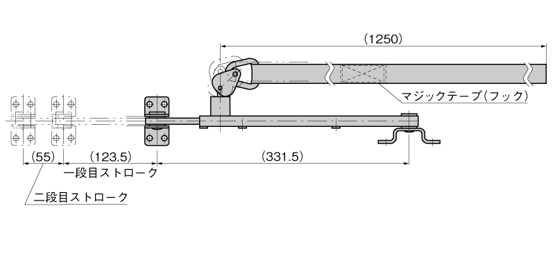 手動の跳ね上げ式は開閉時に激しい衝撃が発生します。本製品はアームをφ10のロックピンで固定することにより強い衝撃に耐えられる構造となっています。